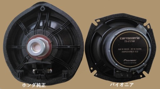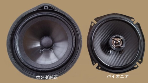 交換前のホンダ純正(VEZEL_RV6)左側、パイオニア(TS-F1740Ⅱ)右側のスピーカーです。(正面)