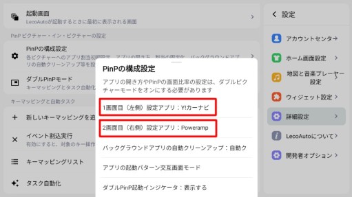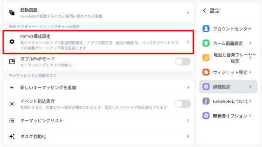 LecoAutoLauncherアプリのピクチャー・イン・ピクチャーの設定(Ver.1.7.2.5 にて)です。