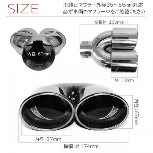 ※ 購入の際の注意点としては、純正のマフラー外径を測定してそれに対応する製品を購入してください。