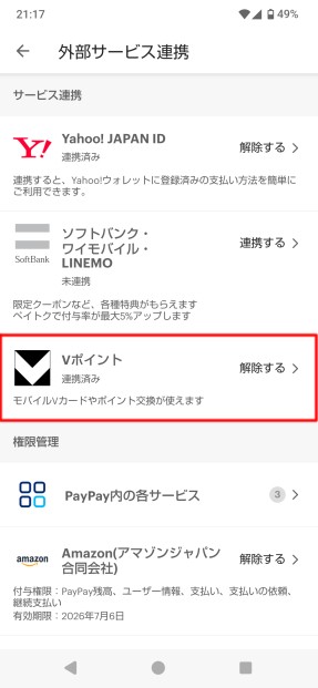 相互交換に必要なVポイントサービスとの連携はPayPayアプリで簡単にできます。